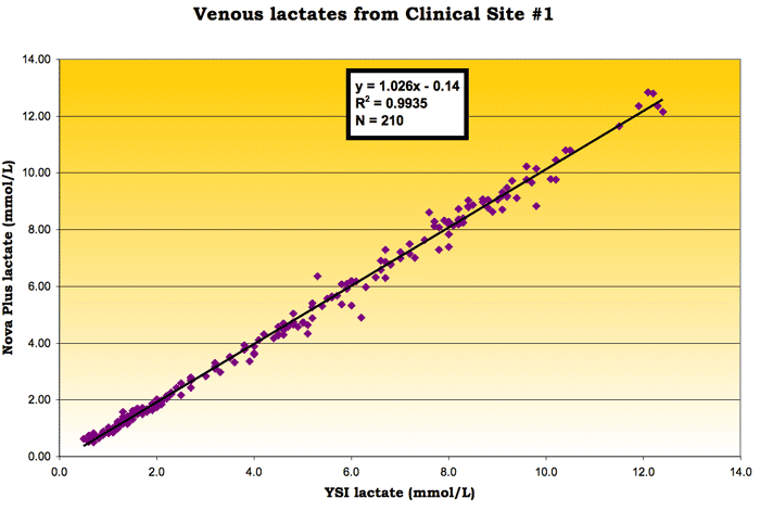 This data represents part of these studies and compares the Lactate Plus with the YSI and Lactate