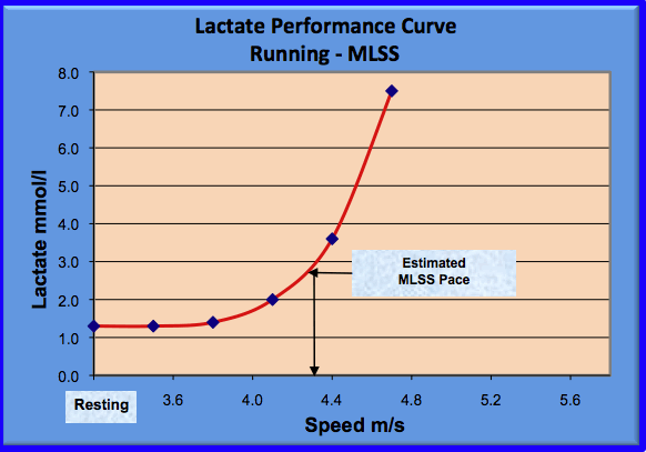 The coach or athlete could attempt to estimate the MLSS (Maximum Lactate Steady State) using the data from the test above. The problem is that such an estimate is very subjective. It requires experience and also the estimate will vary according to the person doing the estimating. This estimate, if felt necessary, should be verified by a control test.